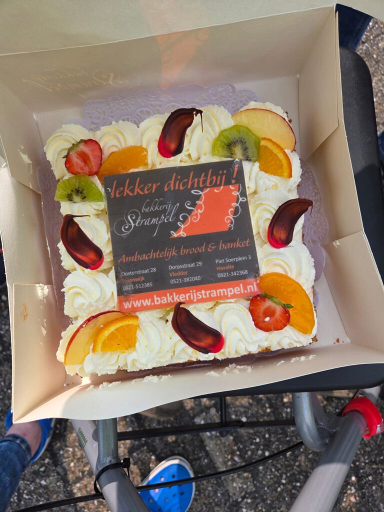 Jannie de Jonge kreeg de taart van de week voor het meegaan naar de NK GBowlen in Breda. Heiko en Margriet van Son hebben ons hier mee verrast. Het was heerlijk.